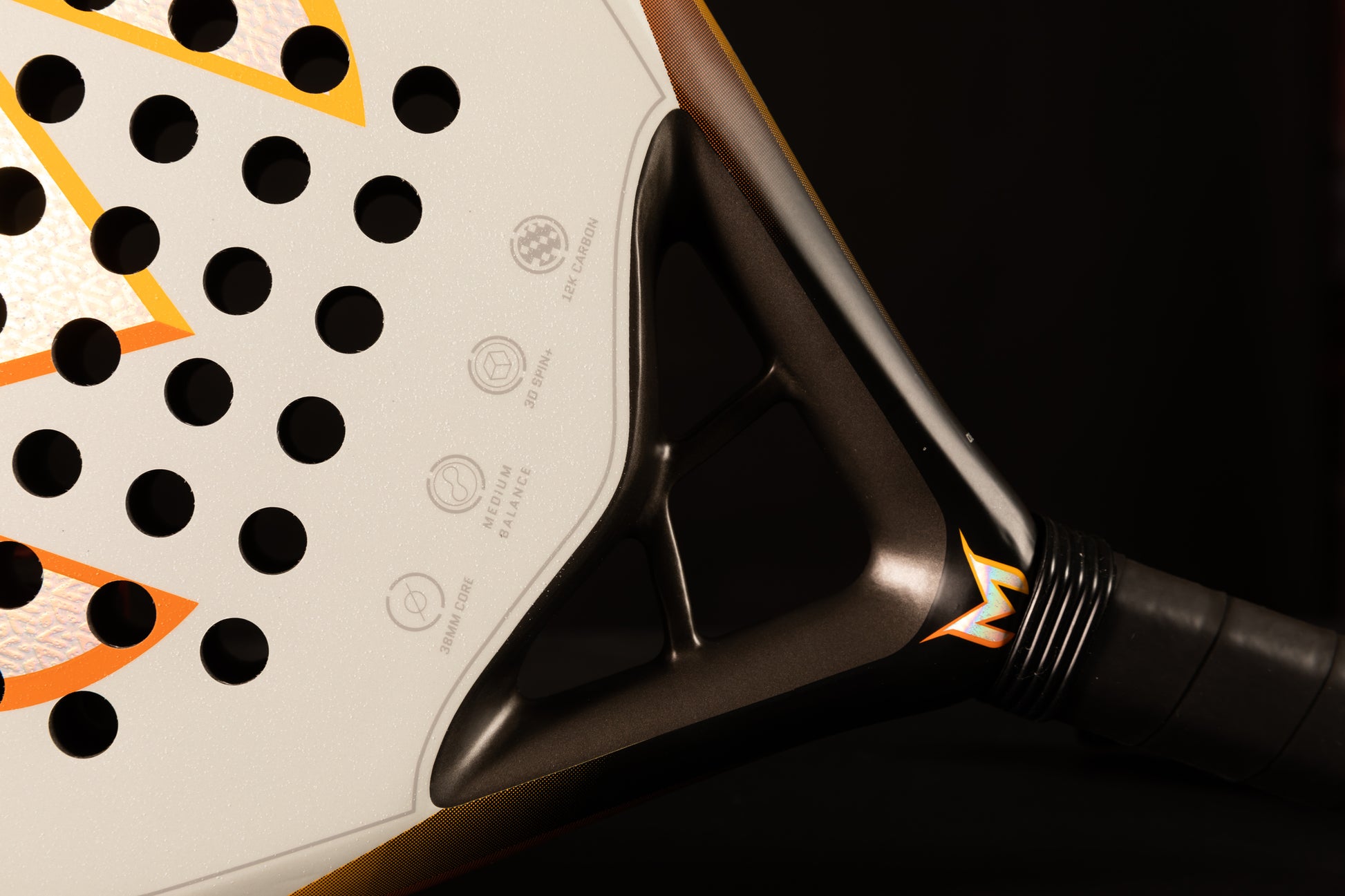 Explosiveness and extreme maneuverability make Malona M200 a racket suitable for medium-high level players. Attractive design, developed and designed, totally in Italy will make you recognizable on the field. The combination of high quality 12k carbon and Eva rubber allows you to easily control even the most difficult shots. The textured effect finish and 3D Spin+ technology will allow you to give greater effect to all your game trajectories.